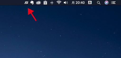 設定が無事終わるとメニューバーのアイコンが雲付きのアイコンに変わります。