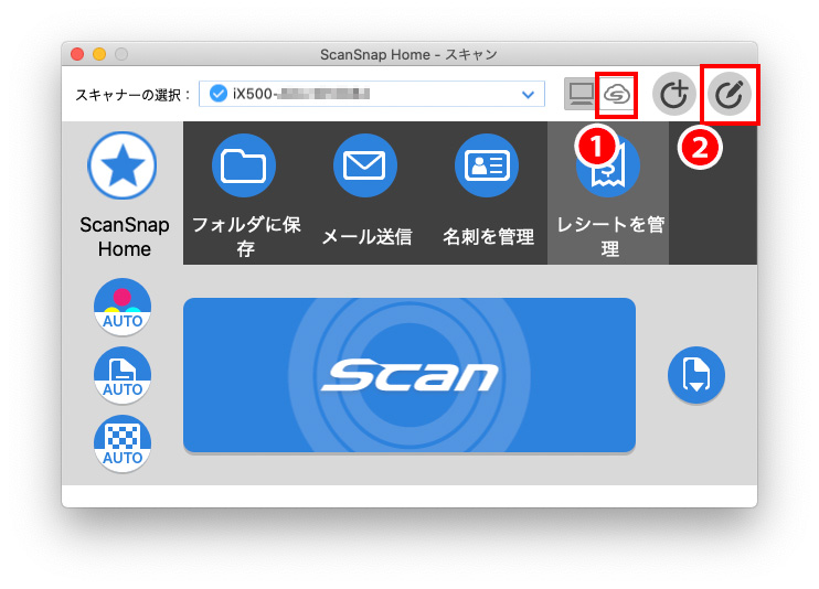 メニューバー>環境設定>アカウント。でScanSnapアカウントが有効になっていることを確認しておきます。