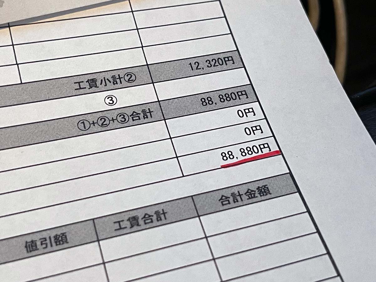 そしたら見積もりがなんと88880円。