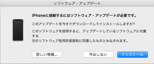先ずバックアップ復元しようとすると「iPhoneに接続するにはソフトウェア・アップデートが必要です。」とウインドが開く。