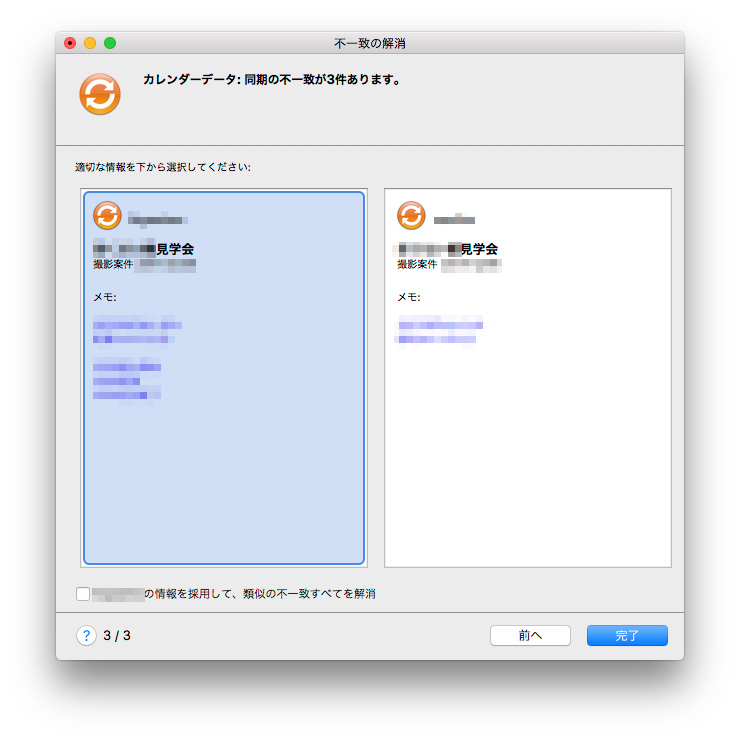 「○○と同期するとこのコンピューター上のカレンダー、イベント、またはToDoの25%以上が変更されます」とでて困ってしまう。