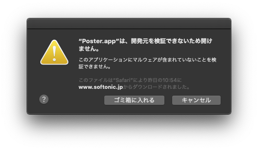 しかも、PosterをインストールしようととするとMacOSがマルウェアと感知してしまう。