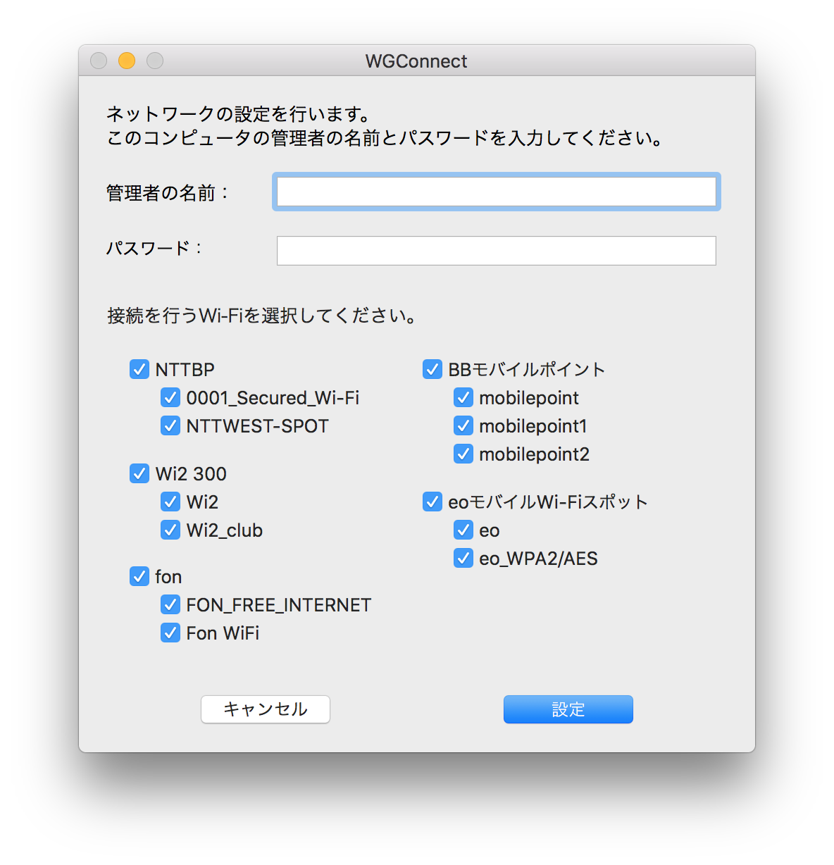 TOP>サービス>ワイヤレスゲートWi-Fi>ご利用方法> パソコン・無線LAN端末の初期設定>MacOS