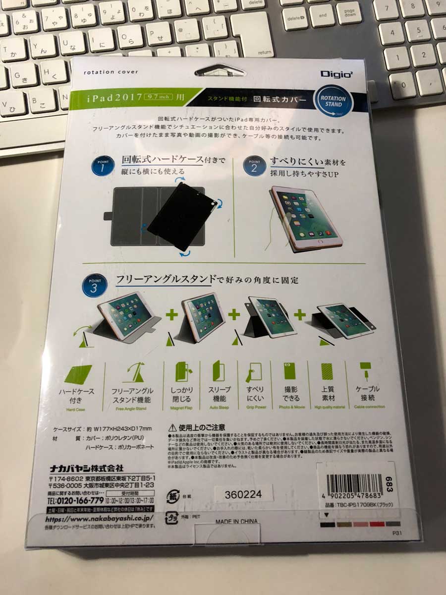 ・ナカバヤシ製 iPad2017 9.7インチ用回転式カバー(TBC-IPS1709)